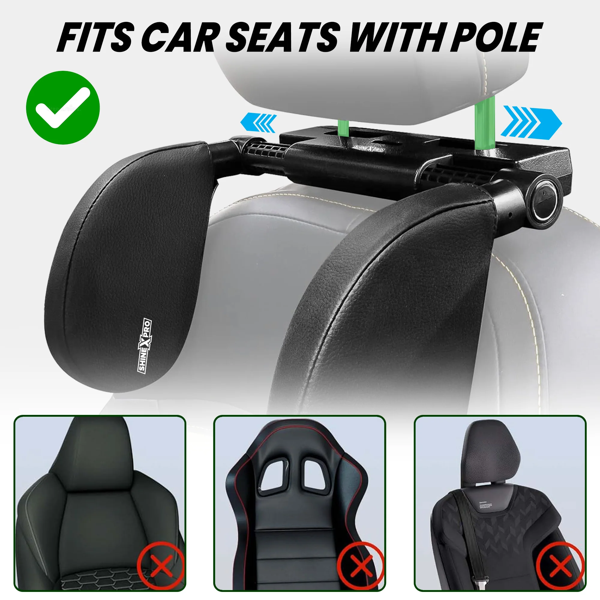 Introducing ShineXPro Car Headrest - a solution for comfortable & enjoyable long drives in the car, for both adults and kids. Our car neckrest helps maintain the right posture and prevent strain on your neck even when you fall asleep during long drives. Our neck rest pillow features ultra. soft memory foam which balances comfort and support, adapting to your unique contours. It has an adjustable locking mechanism which makes it a breeze to attach it to all car seats. It comes with a soft & premium leather cover which offers a luxurious feel and superior durability.