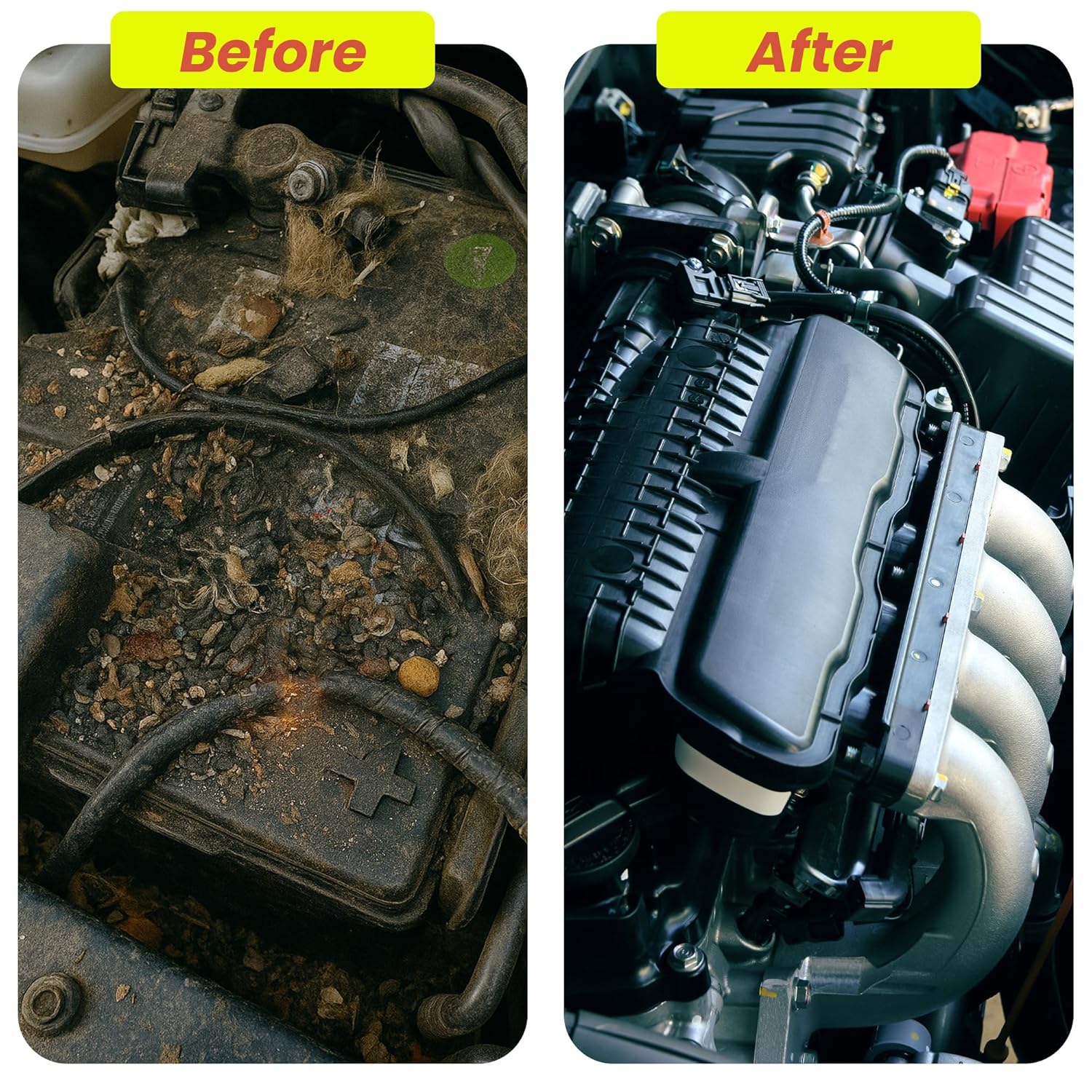 ShineXPro Rat Repellent For Car is a specialised spray designed to deter rats and other rodents from chewing on critical parts of your vehicle, such as the wiring, hoses and insulation because of it's extremely bitter taste. It does not poison or kill the rats. Our rat deterrent for cars uses a European standard non-toxic bitterant which ensures that it is human safe in case of accidental ingestion or inhalation. It comes in an aerosol can with a 360° nozzle which allows for a leak free and easy application even in hard-to-reach areas of your vehicle. ShineXPro rat spray for car is safe for use on all automotive components including electrical wires, fuel lines, tyre arch and undercarriage parts.